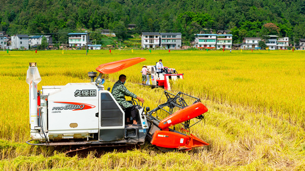 機(jī)械收割稻谷現(xiàn)場(chǎng)。奉節(jié)宣傳部供圖