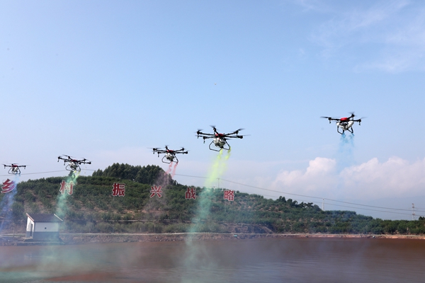 現(xiàn)場無人機(jī)表演。陳仕川攝