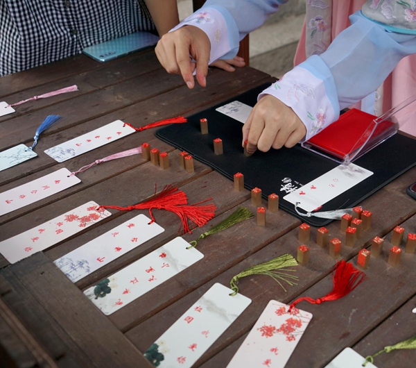 國(guó)慶期間,游客還可以體驗(yàn)多種花式國(guó)潮玩法。在藥池壩景區(qū),可體驗(yàn)活字印刷、國(guó)潮面具繪制、令牌投壺、金元寶套圈等互動(dòng)游戲;在天星小鎮(zhèn)可參與國(guó)潮扇面書法互動(dòng)。