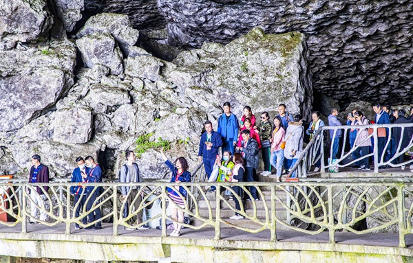 嘉賓在金佛山燕子洞考察金佛山喀斯特奇觀。南川區(qū)委宣傳部供圖