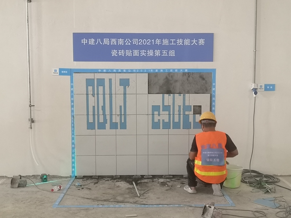 瓷磚貼面比賽現(xiàn)場。中建八局西南公司供圖