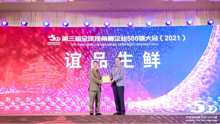 第三屆全球獨(dú)角獸企業(yè)500強(qiáng)大會(huì)(2021)頒獎(jiǎng)現(xiàn)場(chǎng)。誼品生鮮供圖