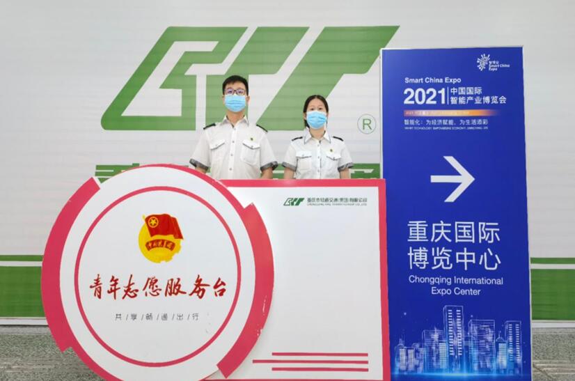 搭建青年志愿服務(wù)臺助力2021智博會。重慶軌道集團(tuán)團(tuán)委供圖