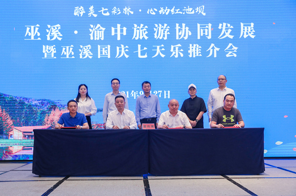 人民網(wǎng)重慶9月27日電 國(guó)慶假期去哪玩?重慶巫溪邀請(qǐng)你看過(guò)來(lái)。9月27日上午,巫溪·渝中旅游協(xié)同發(fā)展暨“醉美七彩林 心動(dòng)紅池壩”2021巫溪縣國(guó)慶七天樂(lè)活動(dòng)在渝中區(qū)舉行。