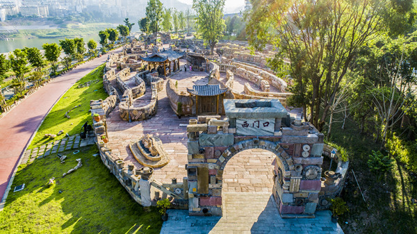 為了收藏云陽的人文治史,云陽在全面規(guī)劃環(huán)湖綠道時(shí),特意擇地新建“云江敘事”,以長680米、寬約5米的小溪為依托,將云陽境內(nèi)巴陽至龍硐壩上全長68公里長江岸線典型景觀縮微,串聯(lián)成云陽的長江故事,通過微縮景觀展陳云陽人文歷史。
