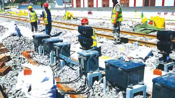 施工現(xiàn)場(chǎng),40多名工人各司其職,在存車場(chǎng)里進(jìn)行線路上砟整道、搗固、軌道精調(diào)、線路消缺等施工作業(yè),施工現(xiàn)場(chǎng)如火如荼。
