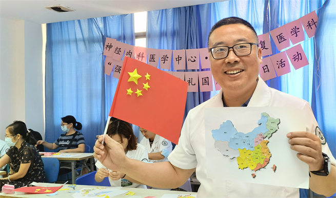 醫(yī)護(hù)人員巧用專業(yè)訓(xùn)練進(jìn)行國(guó)慶主題黨日活動(dòng)