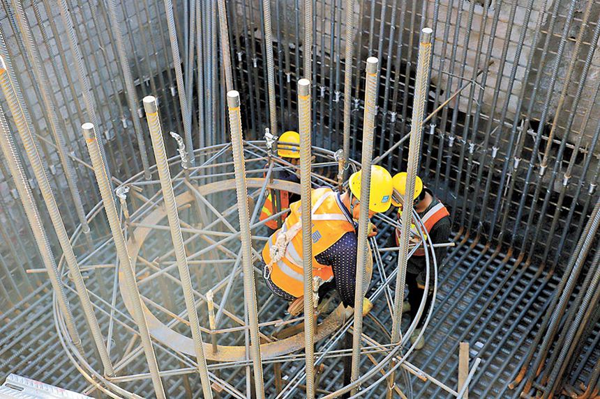 清晨6:30,鋼筋工王飛已出現(xiàn)在重慶江北國際機(jī)場(chǎng)T3B航站樓項(xiàng)目工地上。他當(dāng)天的主要任務(wù),就是為工地上的柱子綁扎鋼筋。