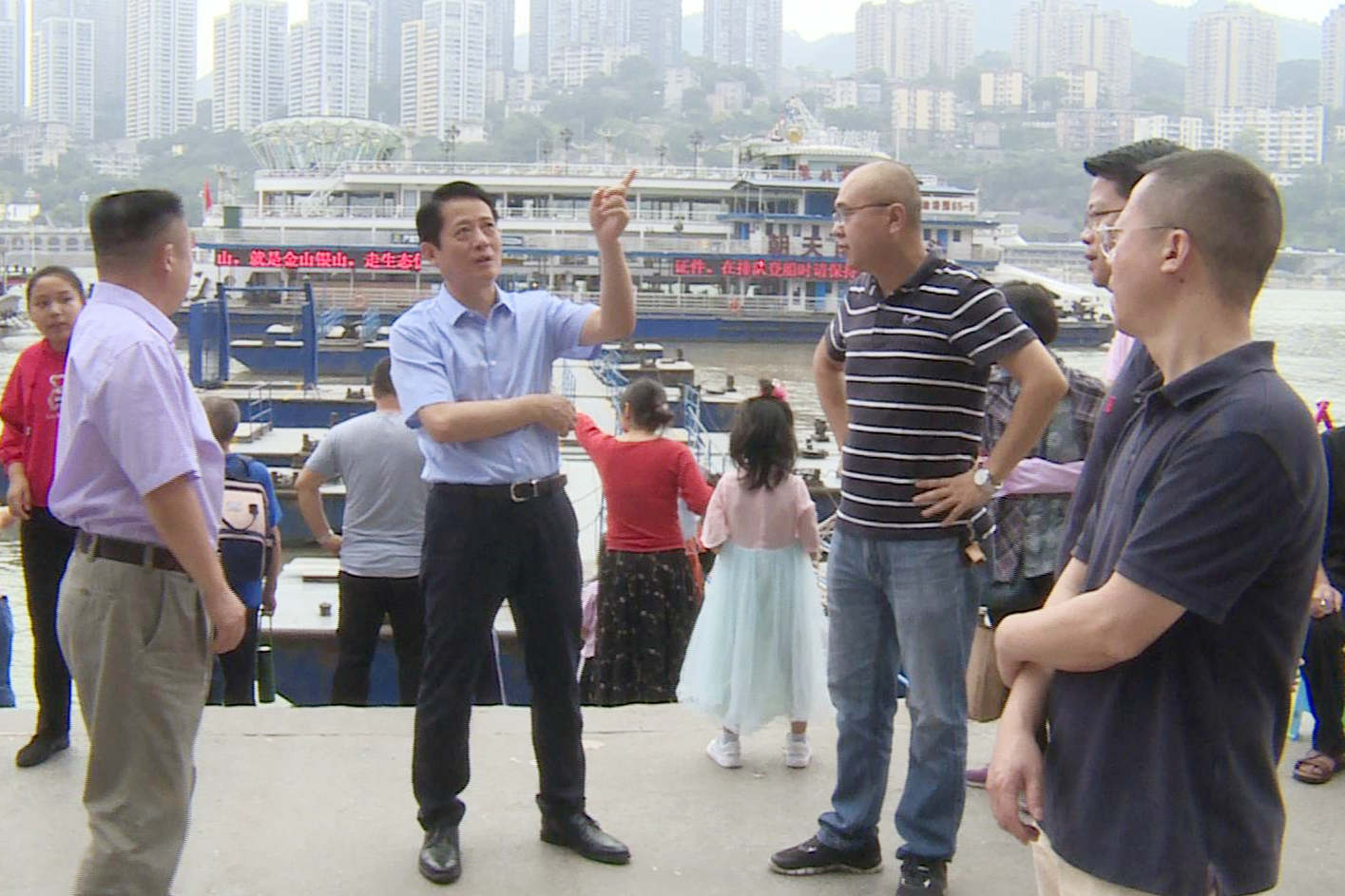 渝中區(qū)委書記趙世慶現(xiàn)場檢查布署過境洪水防范應對工作。渝中區(qū)融媒體中心供圖