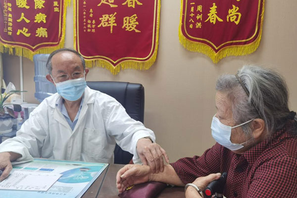 中醫(yī)專家為患者把脈。榮昌中醫(yī)院供圖