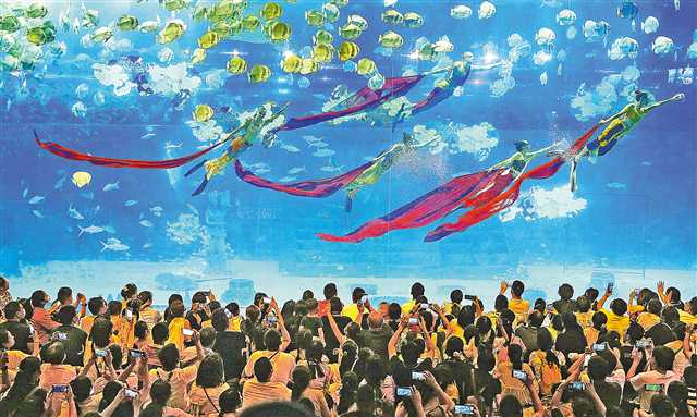 10月5日,巴南區(qū)漢海海洋公園,市民欣賞表演《再見飛天》。特約攝影 鐘志兵/視覺重慶