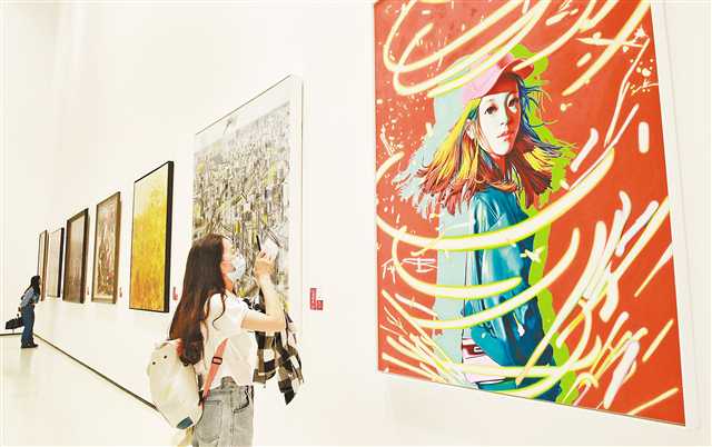 10月2日,在四川美術(shù)學(xué)院美術(shù)館,市民正在觀看展覽。 通訊員 趙杰昌 攝/視覺重慶