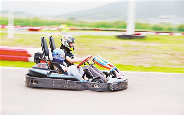 10月6日,游客在位于重慶市高新區(qū)的重慶汽車公園游玩,乘坐卡丁車,體驗(yàn)汽車文化。通訊員 趙杰昌 攝/視覺重慶