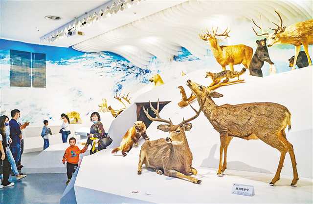 10月6日,市民在重慶自然博物館參觀。國(guó)慶期間,不少市民選擇到各大博物館、科技館、圖書館等室內(nèi)場(chǎng)館,探索科技奧秘,享受文化熏陶。記者 張錦輝 攝/視覺重慶