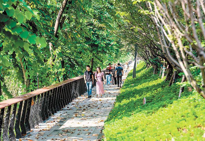 初冬時節(jié),如珍珠般散落的江心島,草木蔥蘢,成為市民難得的鄉(xiāng)愁體驗地;星羅棋布的坡坎崖公園,蜿蜒的山城綠道,為城市營造出一片片綠意空間;煥新的人文遺跡,新創(chuàng)的文化街區(qū),賡續(xù)文脈,導(dǎo)引潮流,讓山城的古今觸手可及……