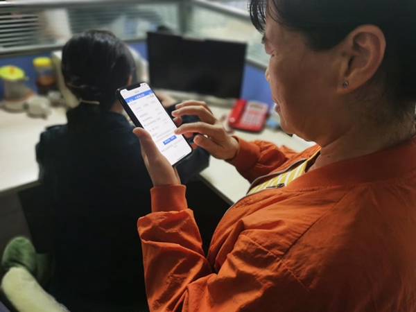 重慶黃桷坪運(yùn)輸有限公司會(huì)計(jì)林惠敏正通過重慶市電子稅務(wù)局移動(dòng)端“點(diǎn)即報(bào)”功能辦理申報(bào)。張繼 攝