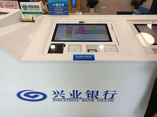 興業(yè)銀行營業(yè)網(wǎng)點(diǎn)配置的自助叫號(hào)機(jī)。李金攝