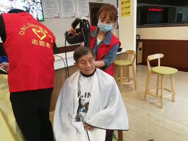 志愿者為老年人理發(fā)。潼南區(qū)民政局供圖