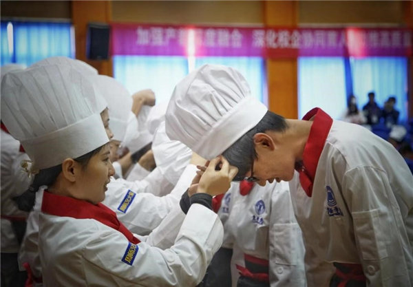 “恭喜同學(xué)們,從今天起,走向了廚師職業(yè)。能在餐飲行業(yè)堅持打拼的人,升職可能性大,職業(yè)發(fā)展空間寬闊,只要肯鉆研,踏實(shí)做事,就會有好收獲……”分享創(chuàng)業(yè)故事時,周永林寄語同學(xué)們,要熱愛烹飪行業(yè),傳承工匠精神,帶著情感去學(xué)習(xí)、工作,將每一件細(xì)小、簡單的事努力做到極致。