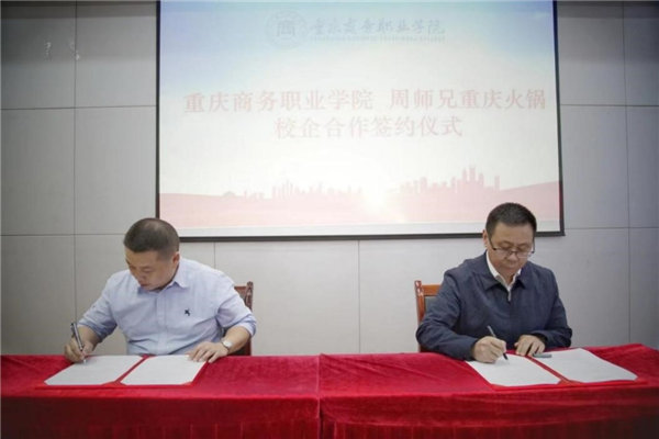 現(xiàn)場,重慶商務(wù)職業(yè)學(xué)院烹飪學(xué)院與周師兄重慶火鍋簽訂校企合作戰(zhàn)略協(xié)議,烹飪學(xué)院在周師兄重慶火鍋掛牌設(shè)立烹飪學(xué)院實(shí)踐育人基地,雙方將開展實(shí)習(xí)、培訓(xùn)、科研等合作。