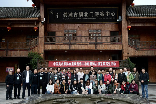 人民網(wǎng)重慶10月18日電 15日,中國美術(shù)家協(xié)會重慶創(chuàng)作中心龔灘寫生基地秋季寫生采風(fēng)活動在龔灘景區(qū)拉開帷幕,活動邀請中美協(xié)會員約100位藝術(shù)家分批次深入龔灘,開展寫生采風(fēng)、美術(shù)交流和研究、展覽活動。