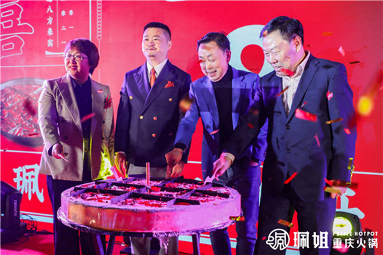 活動(dòng)現(xiàn)場,珮姐重慶火鍋創(chuàng)始人顏冬生、珮姐重慶火鍋聯(lián)合創(chuàng)始人譚偉念、中國烹飪協(xié)會(huì)副會(huì)長兼秘書長佟琳、火鍋委四屆名譽(yù)主席湯慶順,一起點(diǎn)燃珮姐八周年火鍋蛋糕慶祝。