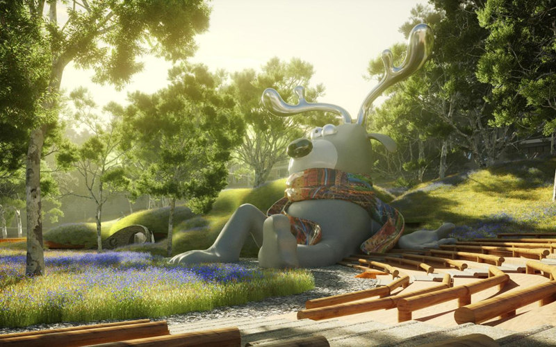 原灘公園里,麋鹿劇場正在上演著精彩,巨大的麋鹿寶寶平躺著身軀,高迪風格的圍巾,構建起一個奇幻斑斕的巨型滑梯,在這里,孩子們可以放飛無盡的想象力,在旋轉中放聲大笑。