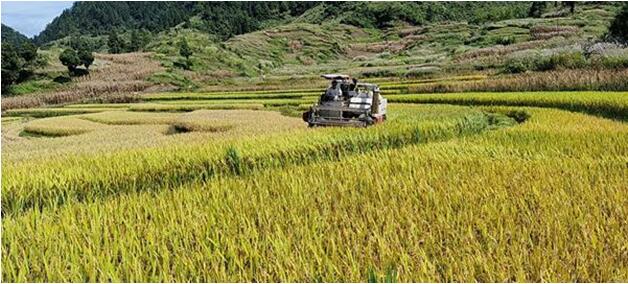 在石柱魚池鎮(zhèn)石家鄉(xiāng)開展水稻機(jī)收服務(wù)。重慶市供銷合作社供圖