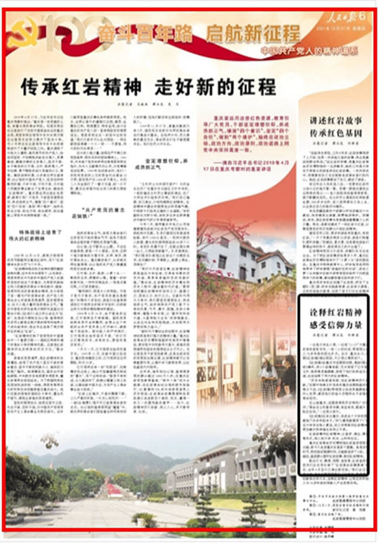 “新時(shí)代干事創(chuàng)業(yè)的征程中,紅巖精神依然是我們強(qiáng)大的精神力量!敝貞c紅巖革命歷史博物館副研究館員葉維維說(shuō),要實(shí)現(xiàn)中華民族偉大復(fù)興,崇高的思想境界和堅(jiān)定的理想信念必不可少。無(wú)論是黨員干部黨性教育,還是各級(jí)學(xué)校的思想政治理論課,紅巖精神都可以發(fā)揮重要作用,以提升學(xué)習(xí)教育效果,讓紅色基因代代相傳。