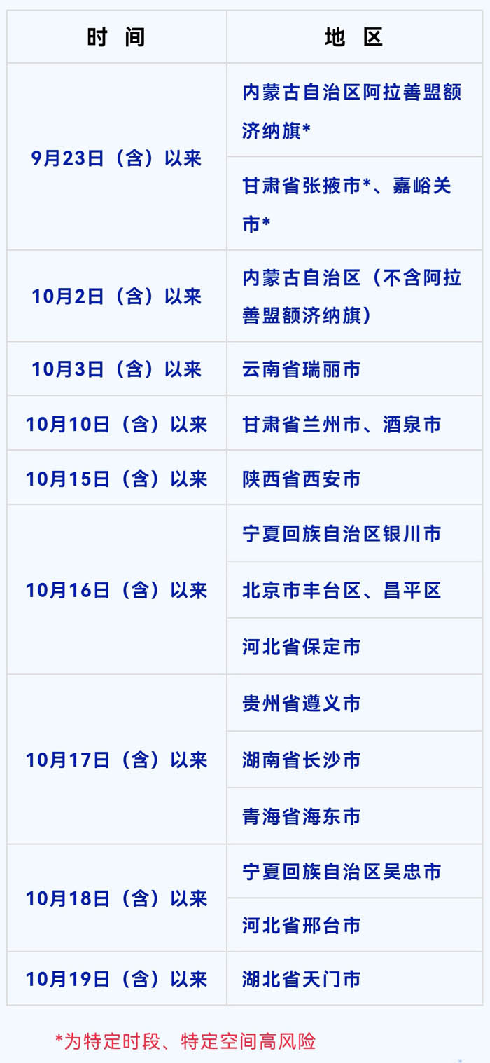 請有以下時段和地區(qū)旅居史的來渝返渝人員,在做好個人防護的前提下,及時向所在地社區(qū)(村)、所在單位報告,按要求配合做好核酸檢測、健康監(jiān)測等各項防控措施!