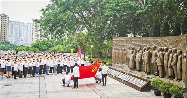 紅巖村,黨員在黨旗前宣誓,重溫入黨誓詞。(本報(bào)資料圖片)首席記者 龍帆 攝\視覺(jué)重慶