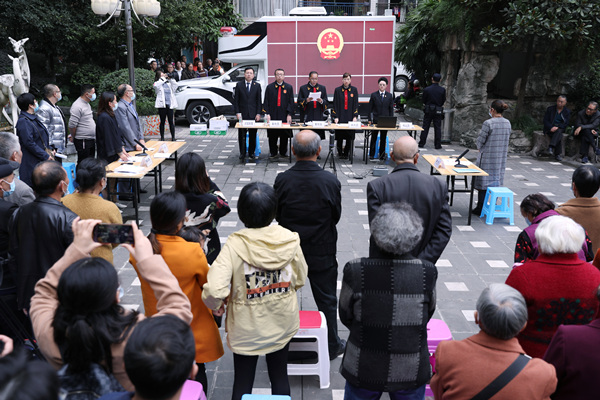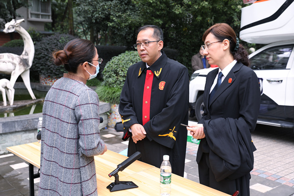 庭審結(jié)束后,法官現(xiàn)場解答群眾的相關(guān)法律問題。重慶五中院供圖