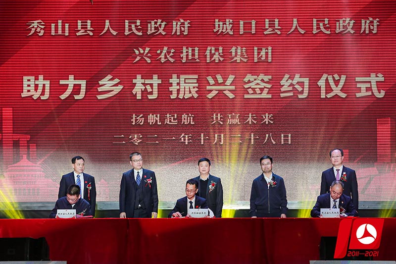 興農(nóng)擔(dān)保同秀山縣人民政府、城口縣縣人民政府簽訂鄉(xiāng)村振興戰(zhàn)略合作協(xié)議。興農(nóng)擔(dān)保供圖