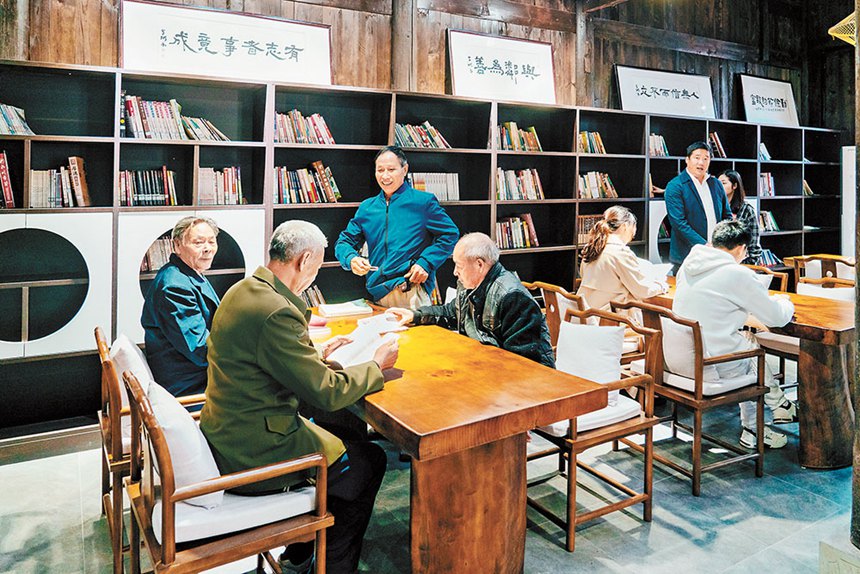 10月28日,永川區(qū)板橋鎮(zhèn)板橋老街,村民們?cè)谒囄臅?shū)院看書(shū)。近來(lái)年,永川區(qū)穩(wěn)步推進(jìn)“三館一院”建設(shè),建成了一批紅色記憶館、民風(fēng)民俗館,并將歷史文化館、書(shū)院(圖書(shū)館)等分館(分院)延伸到鎮(zhèn)街、村社和家庭,優(yōu)化提升農(nóng)村公共文化供給,豐富鄉(xiāng)村文化生活。