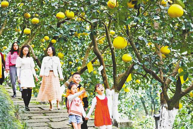 梁平區(qū)合興街道的中華·梁平柚海景區(qū),游客在柚樹下玩耍。(本報資料圖片)特約攝影 劉輝/視覺重慶