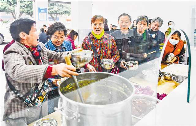 10月27日,江津區(qū)幾江街道西關社區(qū)“幸福食堂”內,前來用餐的老人排隊打飯菜。據了解,針對轄區(qū)內高齡和孤寡老人用餐難問題,西關社區(qū)開辦了“幸福食堂”,為他們提供方便、快捷、可口的配餐、就餐服務。