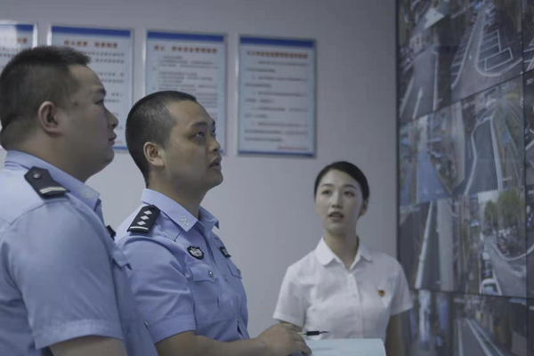 民警在監(jiān)控室查看農(nóng)村道路監(jiān)控運(yùn)行情況。黃山攝