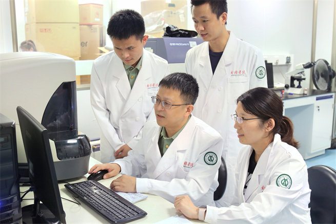 張曦教授悉心指導(dǎo)研究生。新橋醫(yī)院供圖