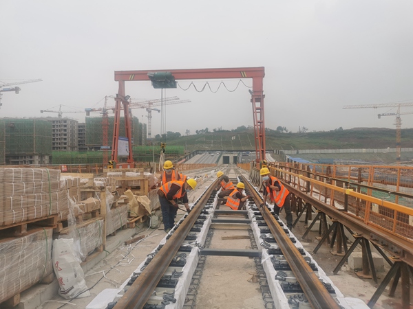 鋪軌現(xiàn)場(chǎng)。重慶市住房和城鄉(xiāng)建設(shè)委員會(huì)供圖