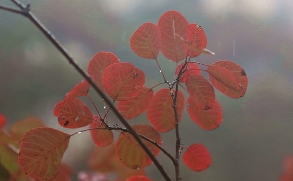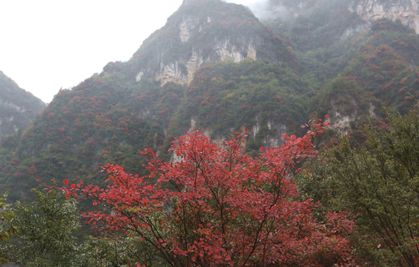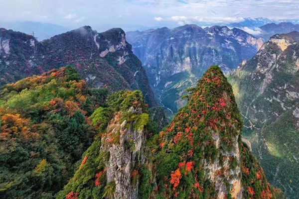 人民網(wǎng)重慶11月8日電 入冬季節(jié),巫山縣竹賢鄉(xiāng)下莊村的紅葉紅了。從溝谷到山腰,從山腰到山頂,綿延起伏,層林盡染。尤其一簇簇火紅的紅葉,爭相斗艷,分外妖嬈,讓絕壁上的天路更顯魅力。