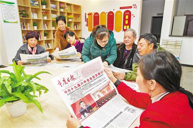 11月12日,北碚區(qū)東陽街道黃桷社區(qū)新時(shí)代文明實(shí)踐站,社區(qū)黨員和居民一起學(xué)習(xí)黨的十九屆六中全會精神。大家紛紛表示,要學(xué)習(xí)好貫徹好全會精神,為實(shí)現(xiàn)中華民族偉大復(fù)興的中國夢貢獻(xiàn)力量。特約攝影 秦廷富/視覺重慶