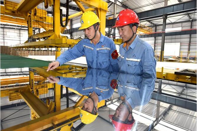 西南鋁壓延廠員工在檢查高級板表面質(zhì)量。西南鋁供圖