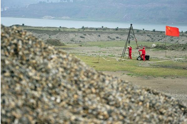 黨員突擊隊(duì)攻克礫石區(qū)井位。西南物探分公司鉆井工程中心供圖