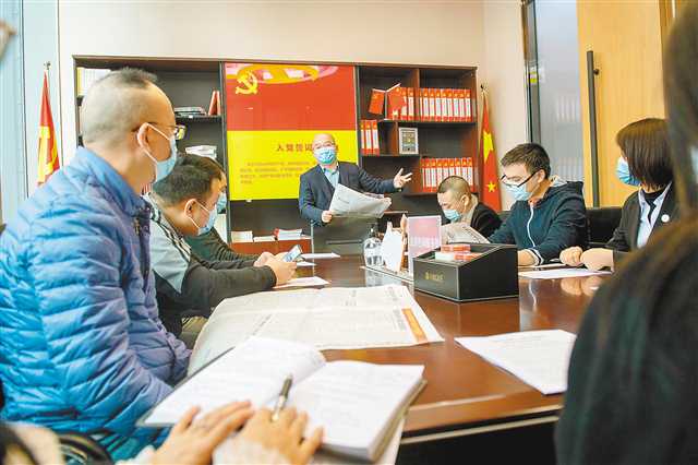 十一月十五日,江北區(qū)江北城街道金融城三號樓宇黨群服務站,非公企業(yè)的黨員代表一起學習黨的十九屆六中全會精神。記者 崔力 攝\視覺重慶
