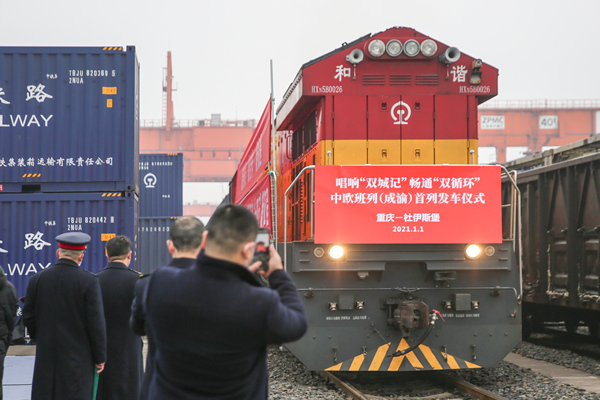 2021年中歐班列(成渝)號開行第一趟列車。重慶國際物流樞紐園區(qū)供圖