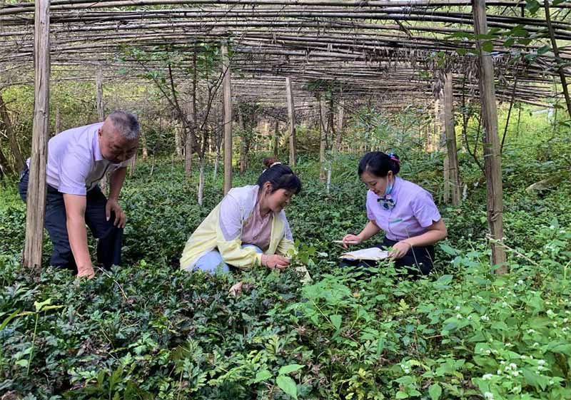 工作人員調(diào)研農(nóng)戶種植情況。農(nóng)行重慶市分行供圖