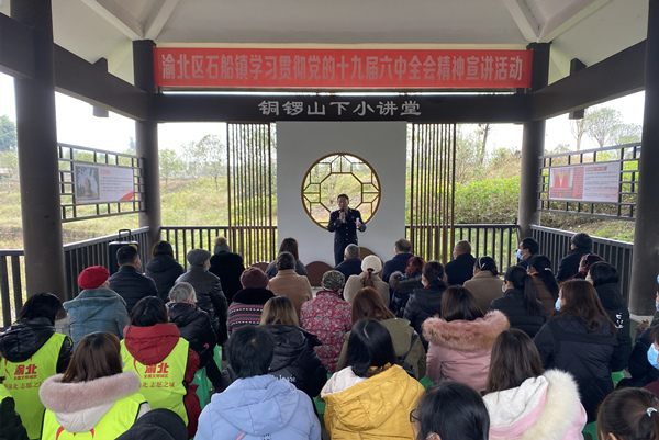 人民網(wǎng)重慶11月22日電 (劉政寧)為深化拓展黨史學(xué)習(xí)教育,推動(dòng)干部群眾學(xué)深悟透黨的十九屆六中全會(huì)精神,11月22日,渝北區(qū)理論名嘴走進(jìn)石船鎮(zhèn)“銅鑼山下小講堂”宣講黨的十九屆六中全會(huì)精神。