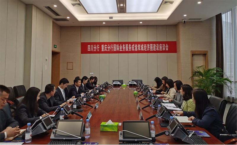 協(xié)同開展國(guó)際業(yè)務(wù)服務(wù)成渝地區(qū)雙城經(jīng)濟(jì)圈建設(shè)座談會(huì)。農(nóng)行重慶市分行供圖