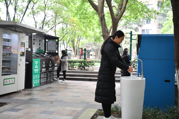 在長石村2號(hào)小區(qū)可以看到,小區(qū)生活垃圾投放點(diǎn)已改造投用。改造后的投放點(diǎn),安裝了遮雨棚,避免雨水對垃圾造成二次污染。雨棚下方放置了4個(gè)垃圾分類桶,地面鋪上了瓷磚。投放點(diǎn)一側(cè)安裝了洗手盆,方便居民扔垃圾后洗手。在垃圾投放點(diǎn),幾位居民正在擺龍門陣。“小區(qū)的垃圾投放點(diǎn)很干凈,我們站在旁邊都聞不到臭味!毙^(qū)居民程季表示。