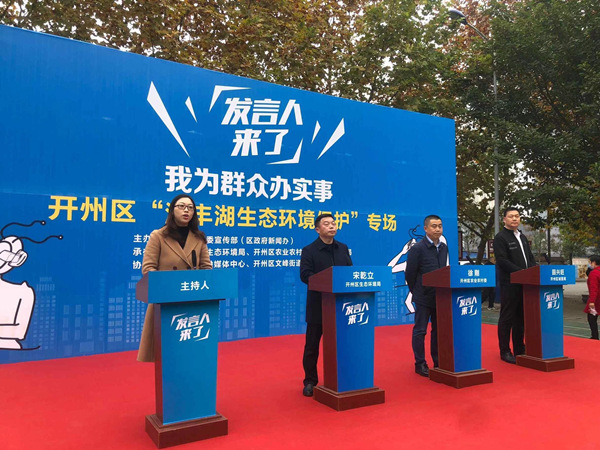 人民網(wǎng)重慶11月25日電 “你提問,我回答!”11月25日,開州區(qū)舉辦“發(fā)言人來了——我為群眾辦實(shí)事”“漢豐湖生態(tài)環(huán)境保護(hù)”專場發(fā)布活動(dòng)走進(jìn)開州區(qū)文峰街道,區(qū)生態(tài)環(huán)境局、區(qū)農(nóng)業(yè)農(nóng)村委、區(qū)城管局的3位“發(fā)言人”向市民一同交流漢豐湖的生態(tài)保護(hù)。